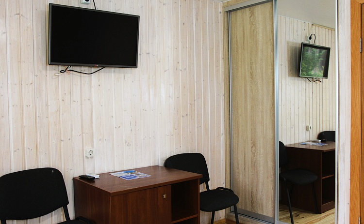 Спальный корпус представляет собой номера блочного типа с террасой (два номера объединены одним общим санузлом).